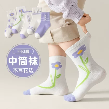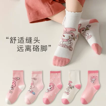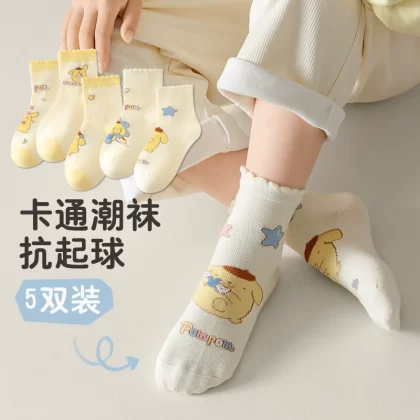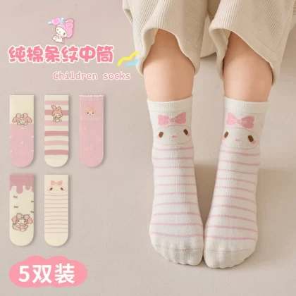 2023 جوارب الخريف والشتاء للأطفال من كورومي كرتون جوارب الأطفال النقي للأطفال الجوارب الجوارب الوسطية للأطفال التنفس.