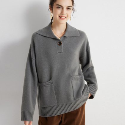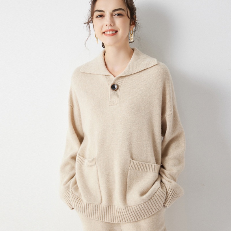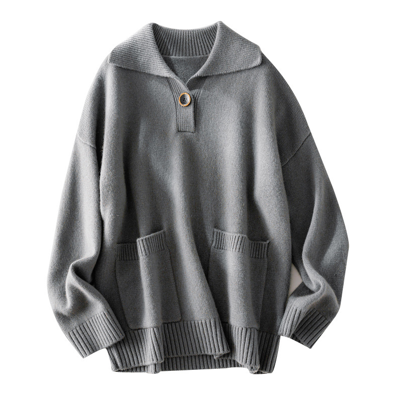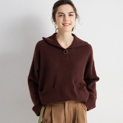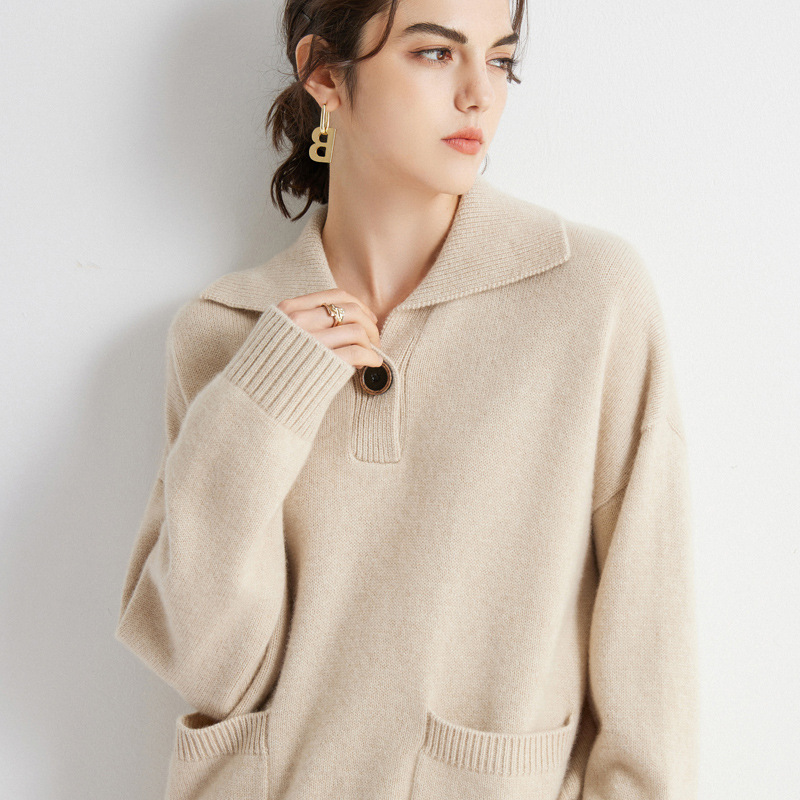 | nameOriginal | 2023 autumn and winter New cashmere sweater women's 100 pure cashmere lapel thick cashmere sweater solid color loose top |