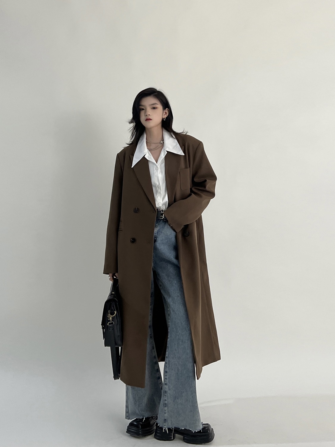 2023 autumn and winter New Design split high street British style retro internet celebrity mid-length over-the-knee suit windbreaker for women