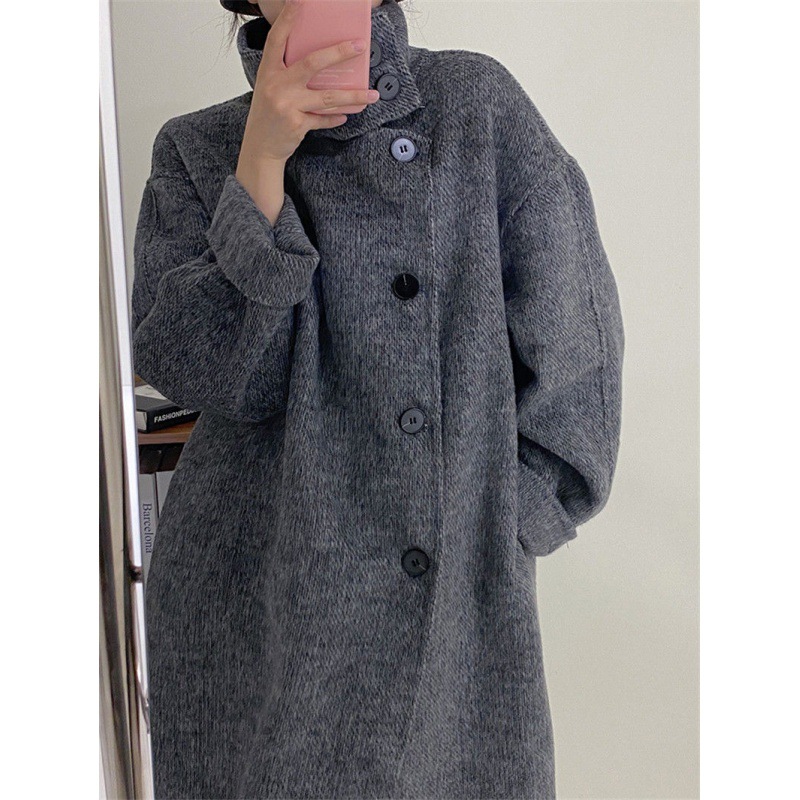 | nameOriginal | 2023 autumn and winter new double-sided wool coat Women's Mid-length dark gray loose thickened small woolen coat |