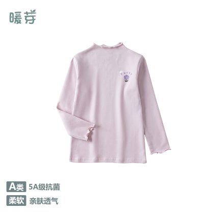 2023 autumn and winter New girls' bottoming shirt pure cotton Korean style girls' wooden ear half turtleneck warm top