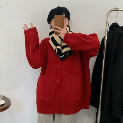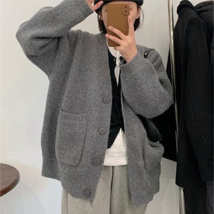 | nameOriginal | 2023 Autumn and Winter New Lazy Style Knitted Cardigan Korean V-Neck Loose Fashion Casual Solid Color Sweater Coat for Women |