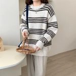 | nameOriginal | 2023 autumn and winter New retro soft glutinous milk fufu lazy knitted striped top loose pullover women's outer wear |