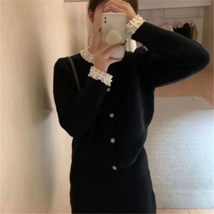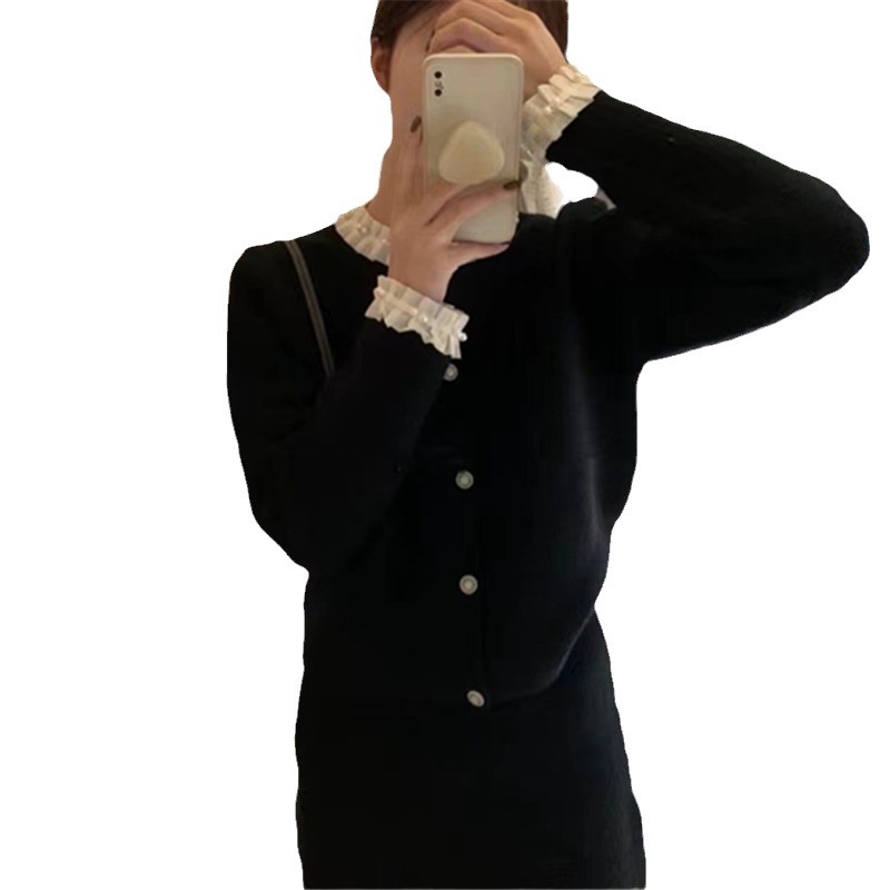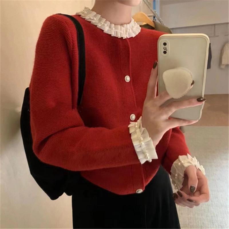 | nameOriginal | 2023 autumn and winter New round neck lace beaded long sleeve sweet knitted cardigan temperament short sweater women's coat |