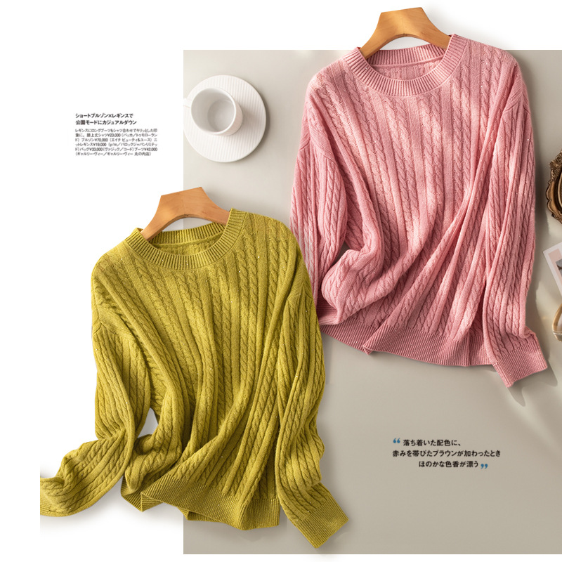 | nameOriginal | 2023 autumn and winter New sequined twisted round neck sheep sweater fashionable lazy style outdoor casual sweater for women |