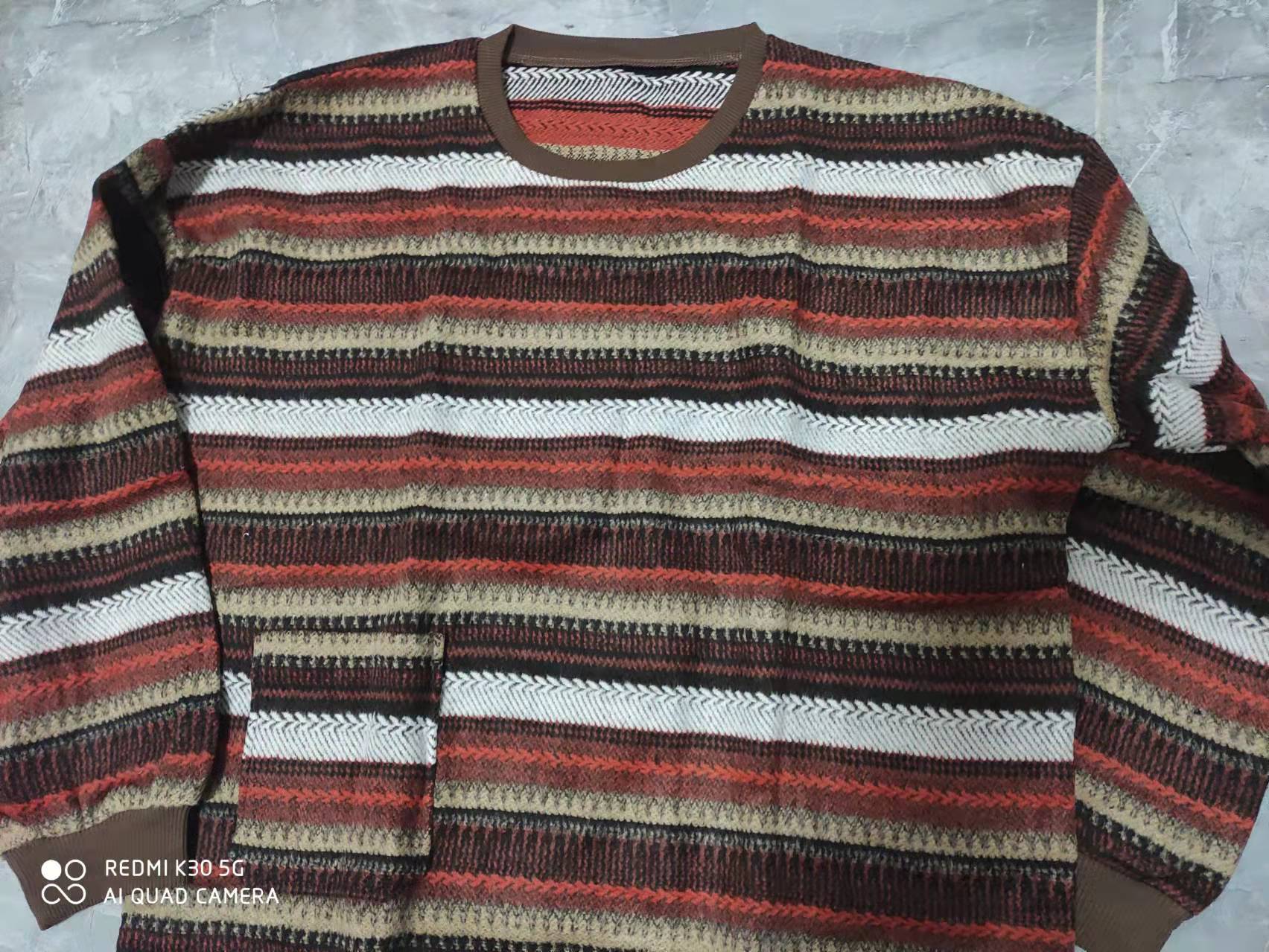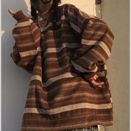 | nameOriginal | 2023 autumn and winter plus size women's clothing fat sister retro lazy style striped woolen loose pocket round neck sweater fleece-lined |