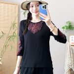 | nameOriginal | 2023 autumn and winter solid color ethnic style embroidered round neck inner long sleeve straight artistic modal cotton Women's bottoming shirt |