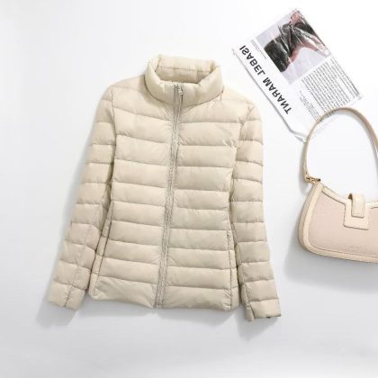 | nameOriginal | 2023 Autumn and Winter Warm Fashionable Vertical Collar Lightweight Short Large Size Middle-aged and Elderly Coat Solid Color White Duck Down Jacket for Women |