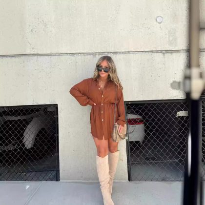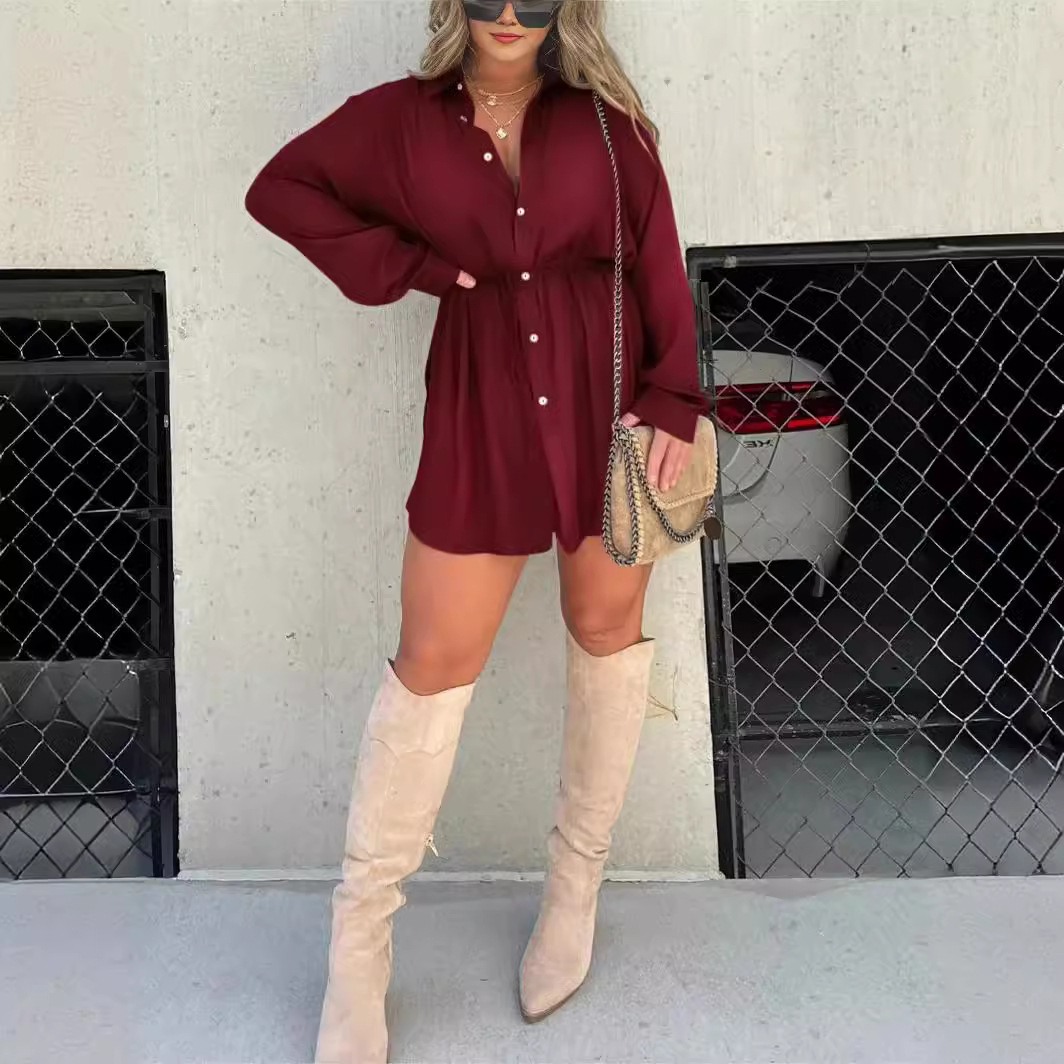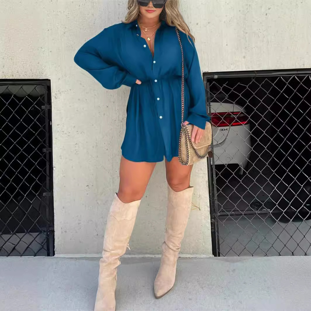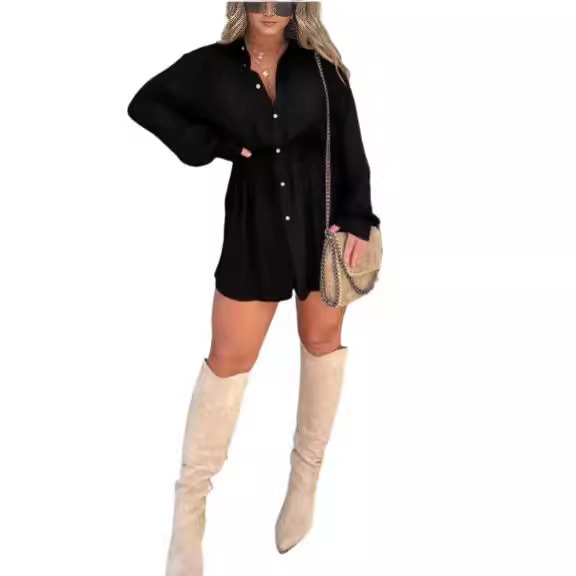 | nameOriginal | 2023 Autumn New Amazon TEMU cross-border European and American women's fashion solid color long-sleeved shirt jumpsuit |
