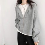 2023 Autumn New hooded sweater women's thin velvet long sleeve Korean style loose zipper coat student sports cardigan Spring