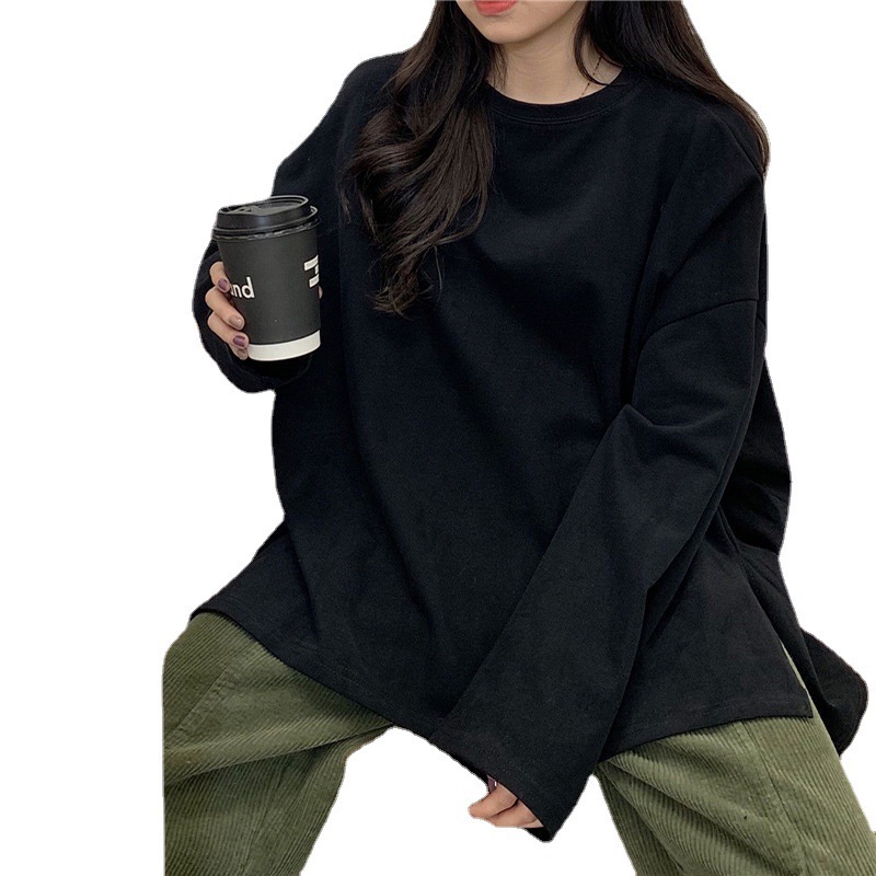 | nameOriginal | 2023 autumn split solid color long-sleeved T-shirt women's fashion bottoming shirt Korean style fashionable student outer wear loose top women |