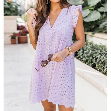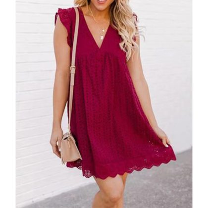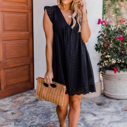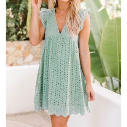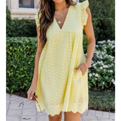 nameOriginal | 2023 cross-border European and American foreign trade Amazon women's lace jacquard hollow V-neck dress double pocket blouse |