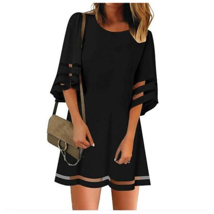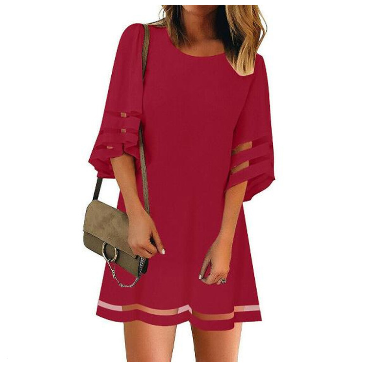 | nameOriginal | 2023 cross-border new women's gauze splicing loose horn sleeve A- line skirt dress factory wholesale |