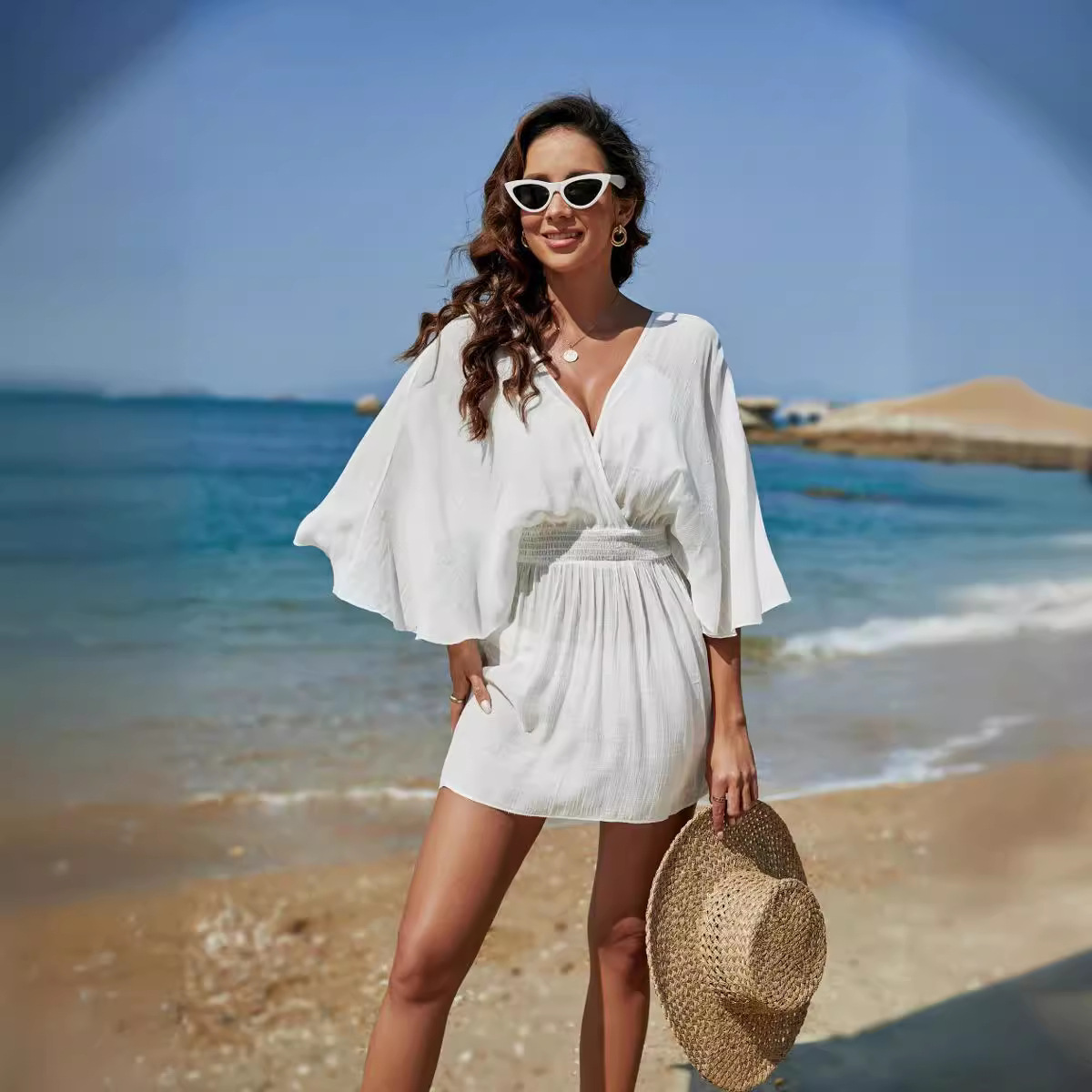 | nameOriginal | 2023 Europe and the United States cross-border solid color beach sunscreen sexy backless dress holiday |