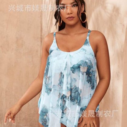 | nameOriginal | 2023 European and American new foreign trade plus size tie-dyed mesh covered adjustable shoulder strap sexy split bikini swimsuit |