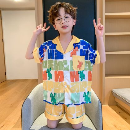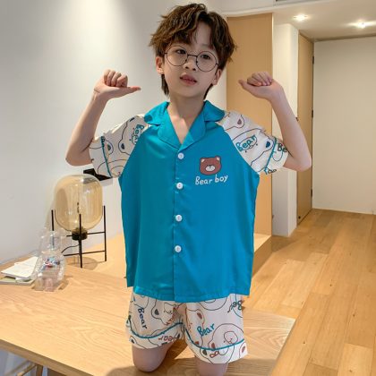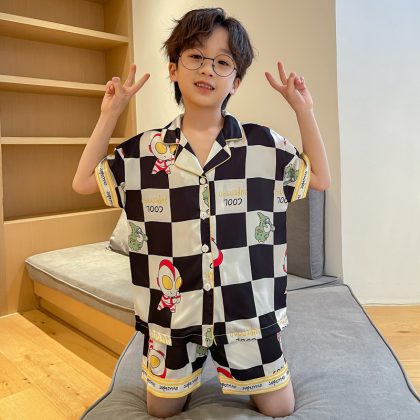 | nameOriginal | 2023 Ice Silk Boy's Pajamas Summer Short-sleeved Shorts Thin Sade Children's Home Clothes Middle and Big Children's Cartoon Suit |