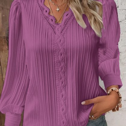 | nameOriginal | 2023 Independent station wish Amazon explosions autumn long sleeve V-neck lace stitching shirt women's shirt women's clothing |