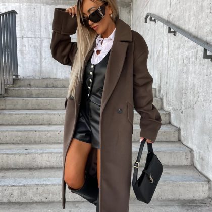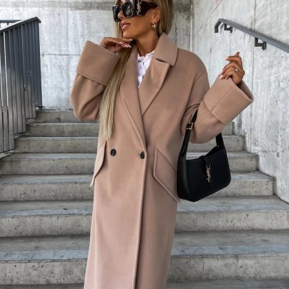 2023 Independent station wish Amazon popular autumn and winter long sleeve suit collar double breasted woolen coat top for women
