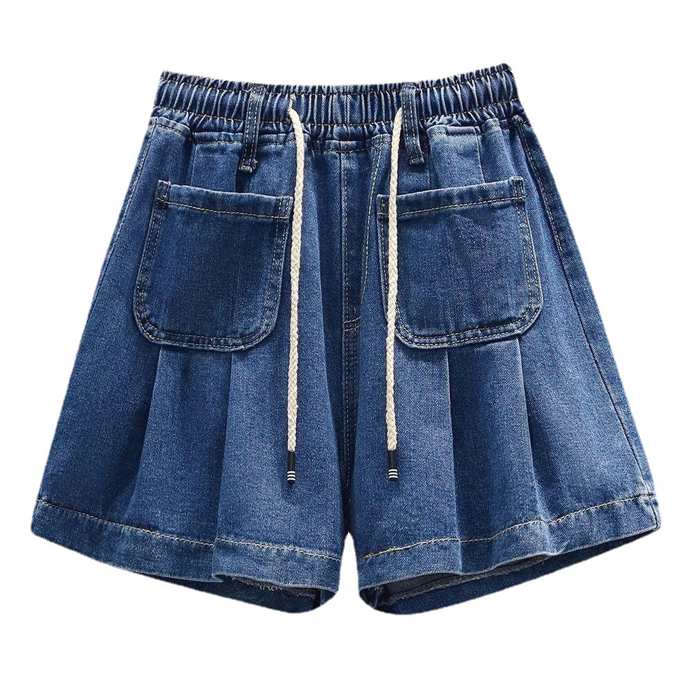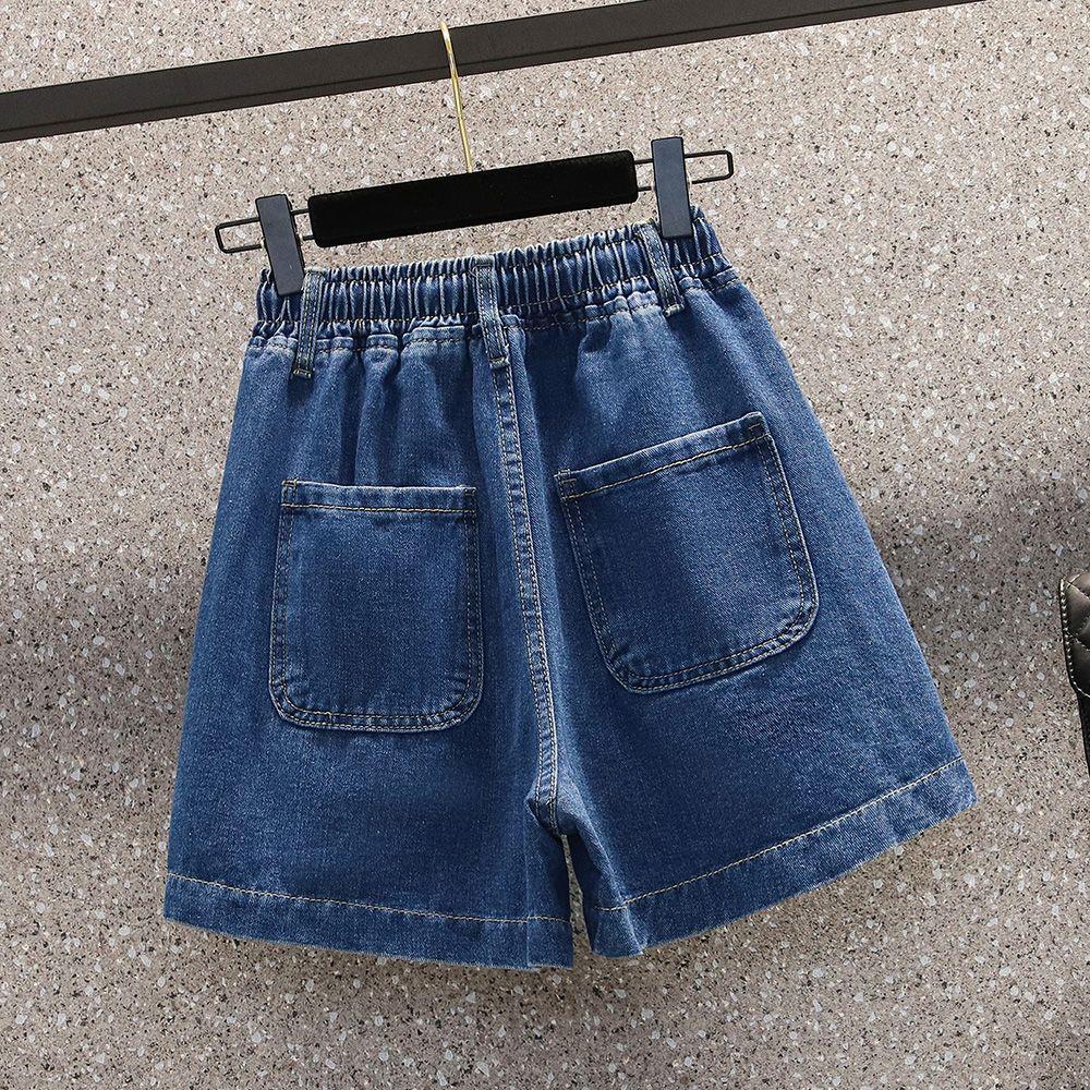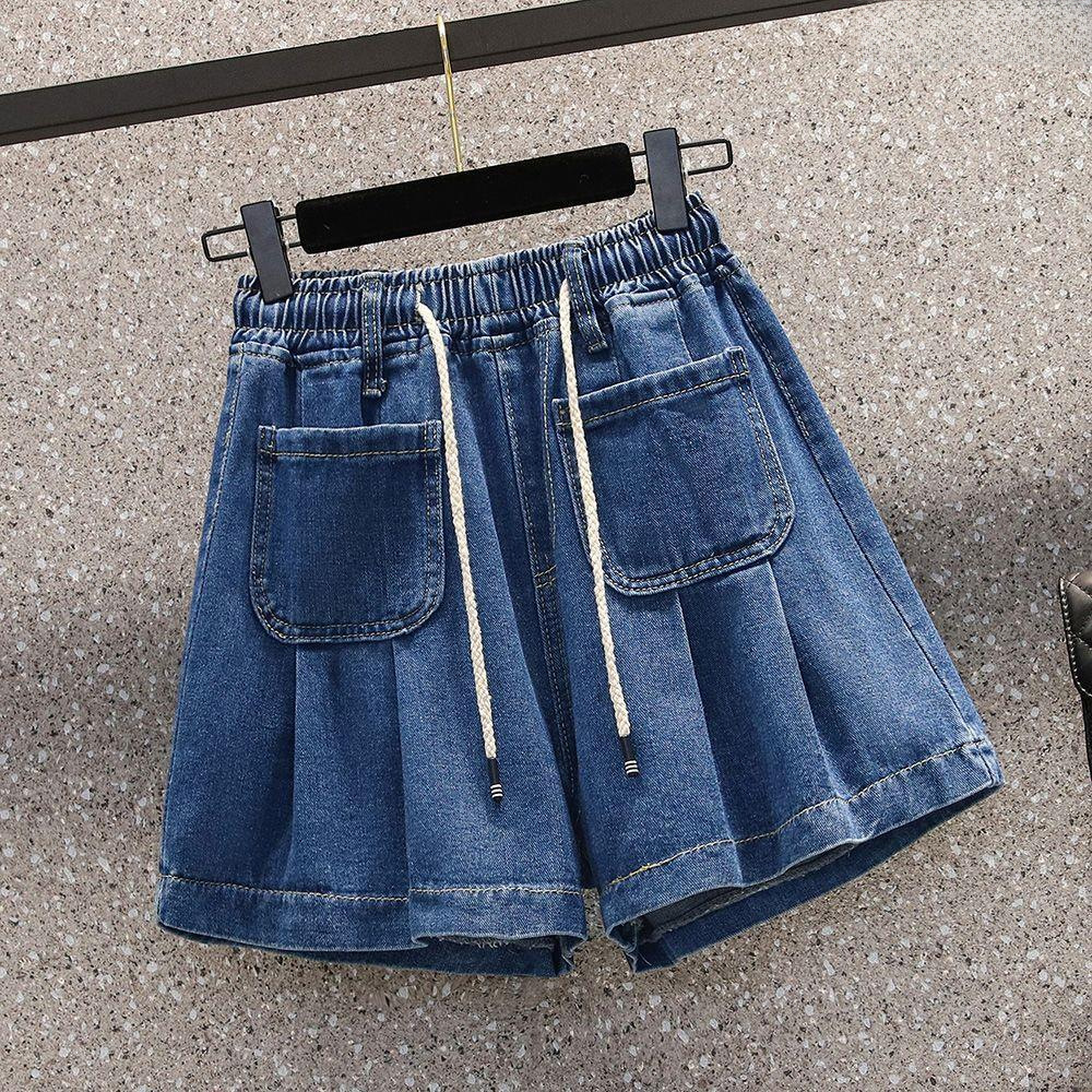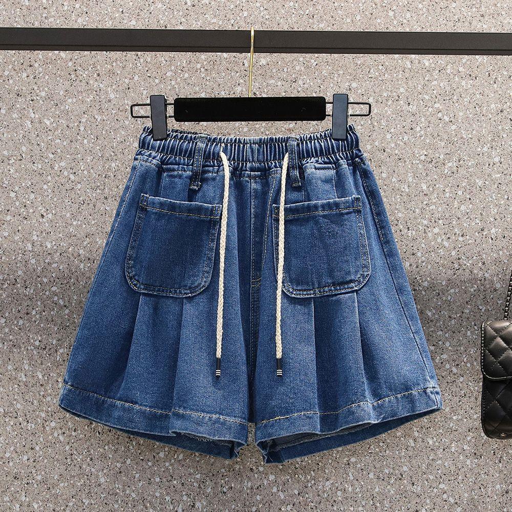 2023 loose high waist casual elastic waist Denim shorts women's summer European culottes plus size chubby girl wide leg hot pants