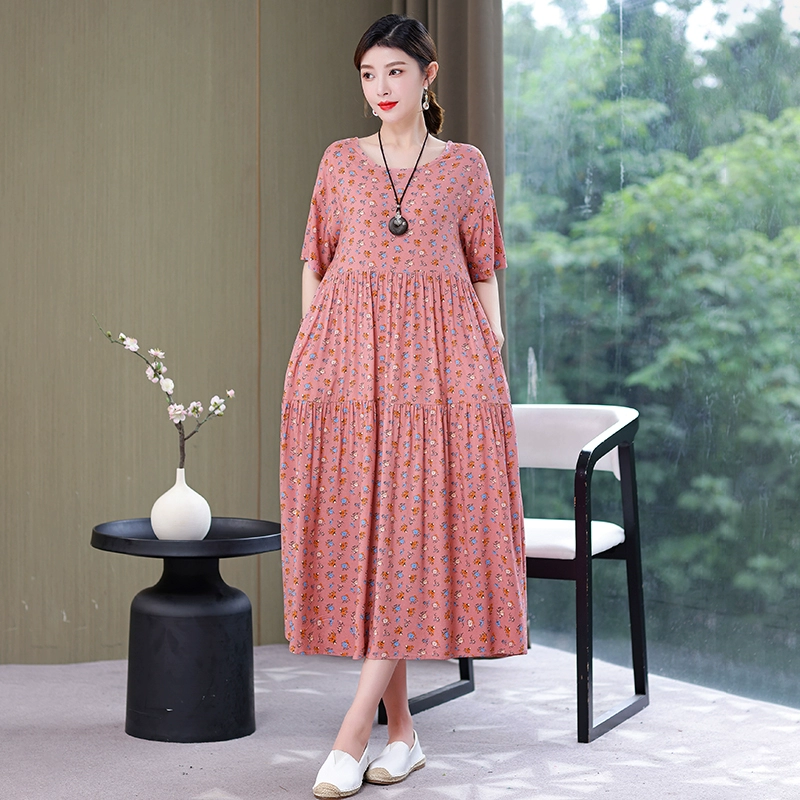 | nameOriginal | 2023 middle-aged and elderly cotton silk dress fashionable loose plus size women's summer mother's outer skirt drapey covering the flesh |