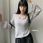 2023 new autumn and winter new Korean Dongdaemun direct mail blackberry neckline slit thin sweater