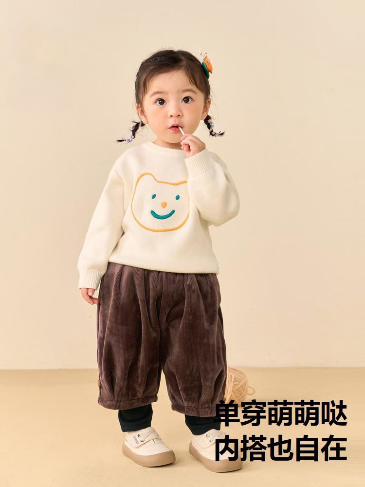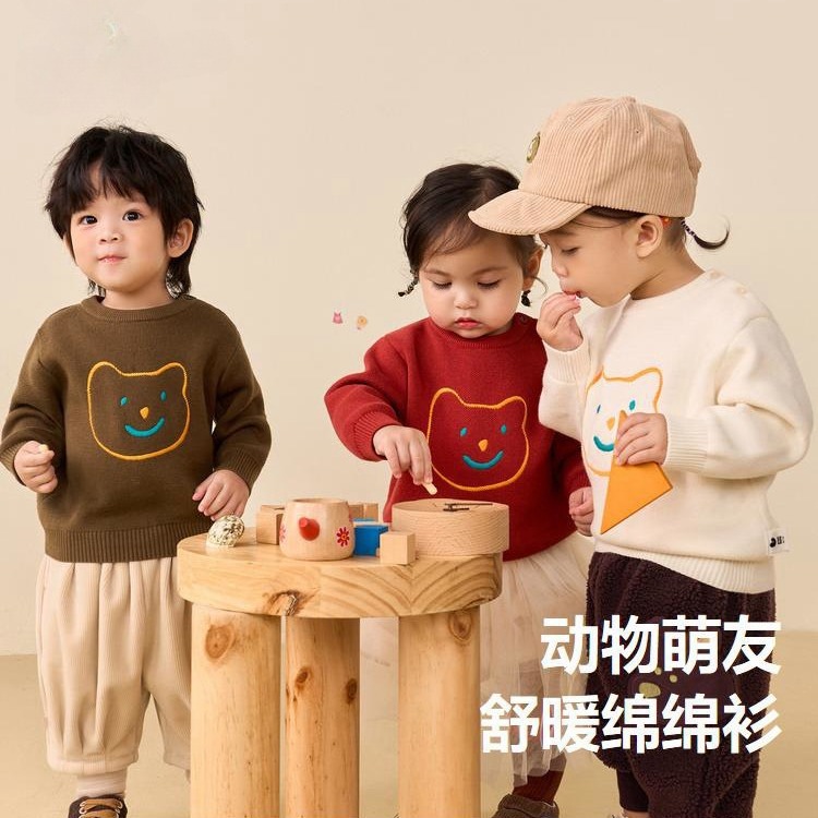 2023 new baby sweater boys' and girls' spring and autumn clothing winter warm knitted cartoon cute warm bottoming shirt