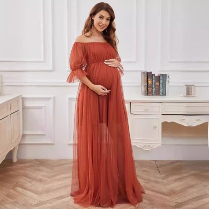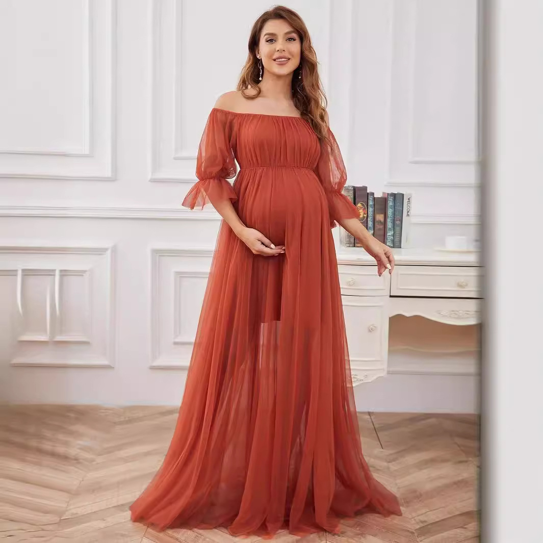 | nameOriginal | 2023 New Evening Dress Pregnant Women's Gown Formal Evening Dress Long Short-sleeved Straight Collar Tulle Solid Color Pregnant Women |