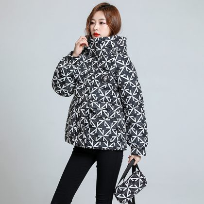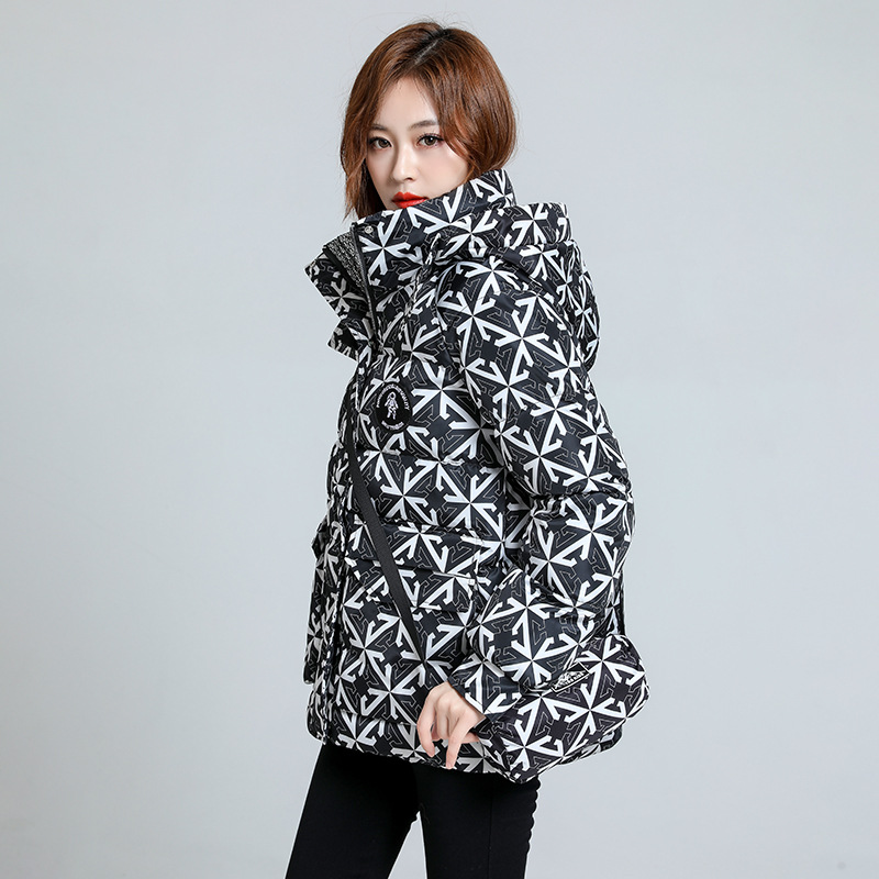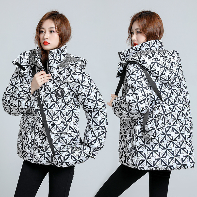 | nameOriginal | 2023 new fashion printed down cotton-padded jacket women's short hooded loose winter warm coat fashion |