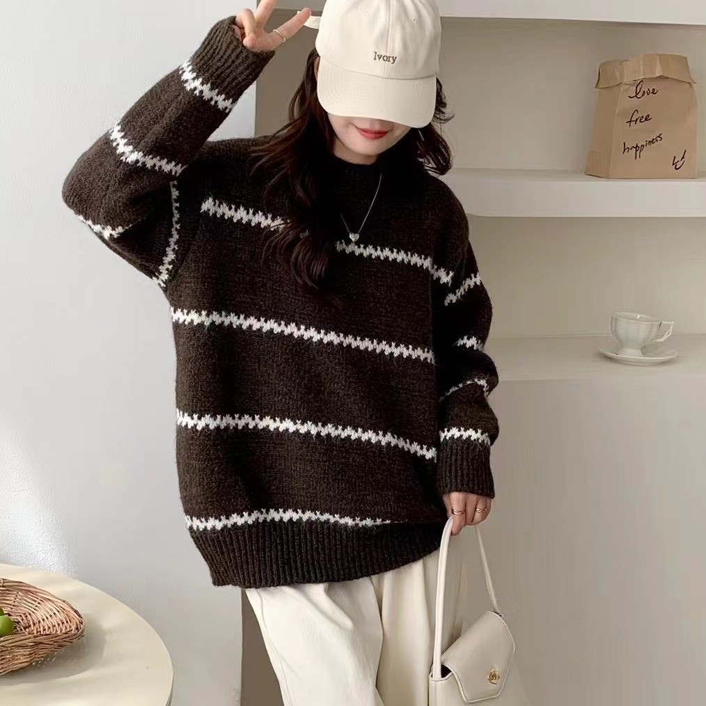 | nameOriginal | 2023 new fashion style versatile retro lazy wind blouse knitted striped sweater for women loose autumn and winter |