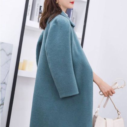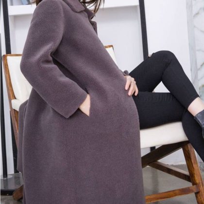جديد 2023 معطف فرو من الصوف الحبيبي قطعة واحدة من جلد الغنم للنساء متوسط ​​الطول معطف من الصوف الحقيقي للخريف والشتاء للنساء