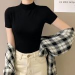 2023 new half turtleneck bottoming shirt Women's T-shirt short sleeve Spring and Autumn Summer multi-color slim temperament niche inner top