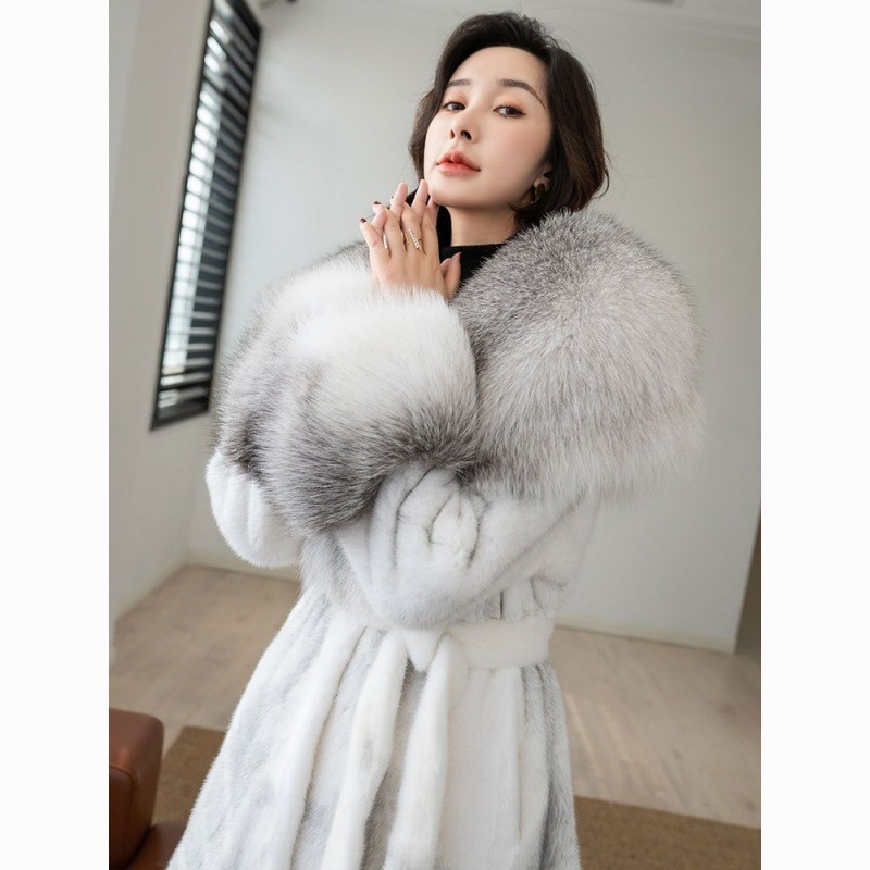 2023 new imported mink Haining Leather Coat Women's oversized fox collar whole mink fur temperament coat
