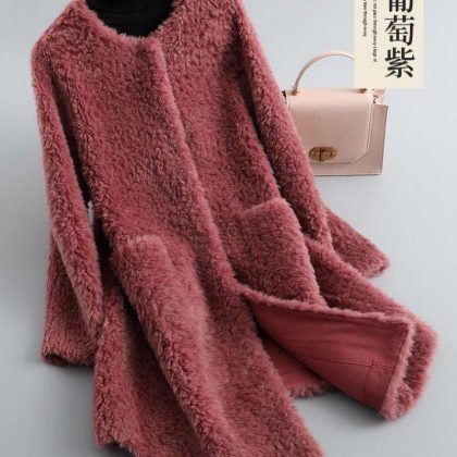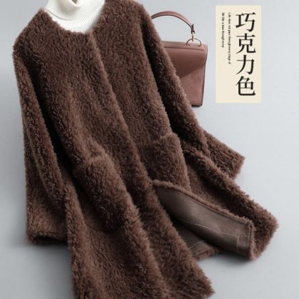 2023 New Particles Suede Coat Women's Mid-length Lamb Wool Faux Fur One-piece Coat for Winter