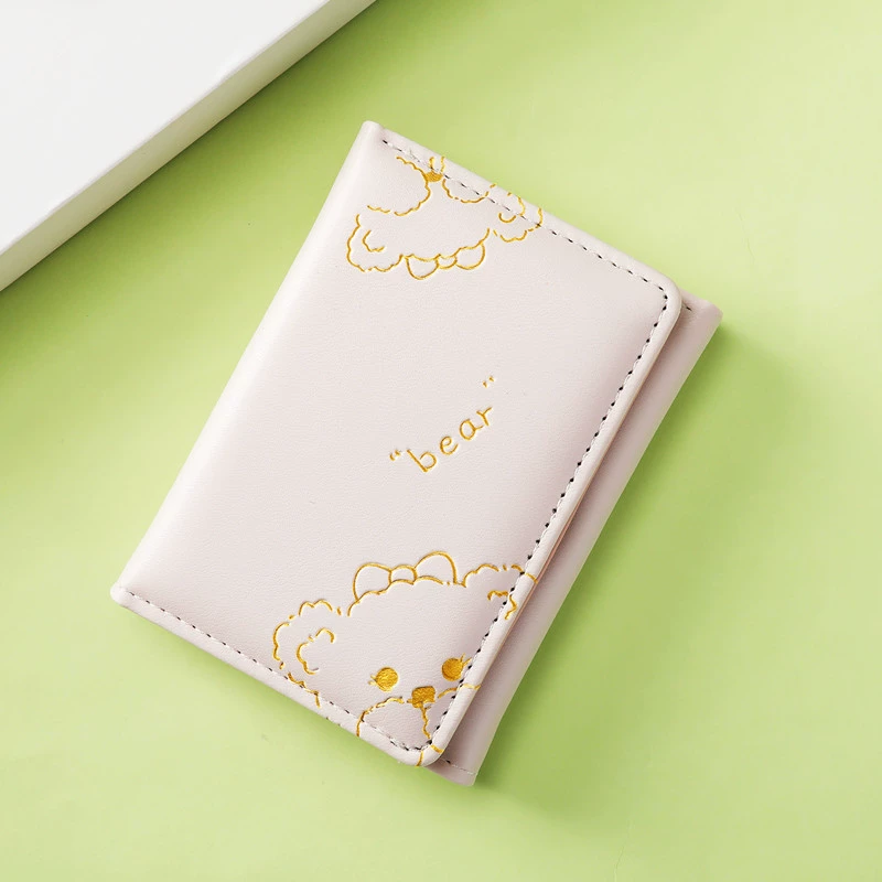 2023 New Short Folding Small Wallet Women's Small and Fresh Korean Version Student Cute Cartoon Bear Thin