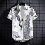 2023 جديد قصير الأكمام قميص الرجال الحرير الجليد تنفس الصيف الكورية المألوف الشاطئ قميص مطبوع نصف كم قميص