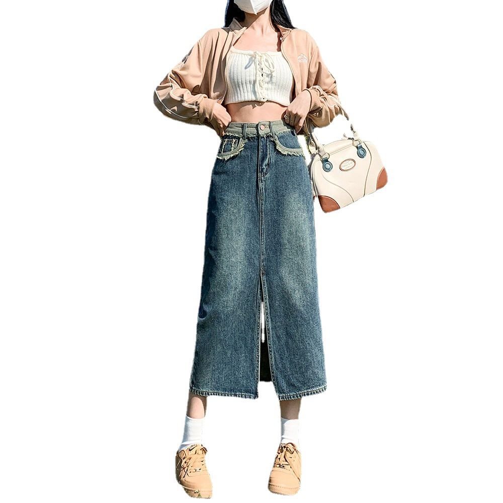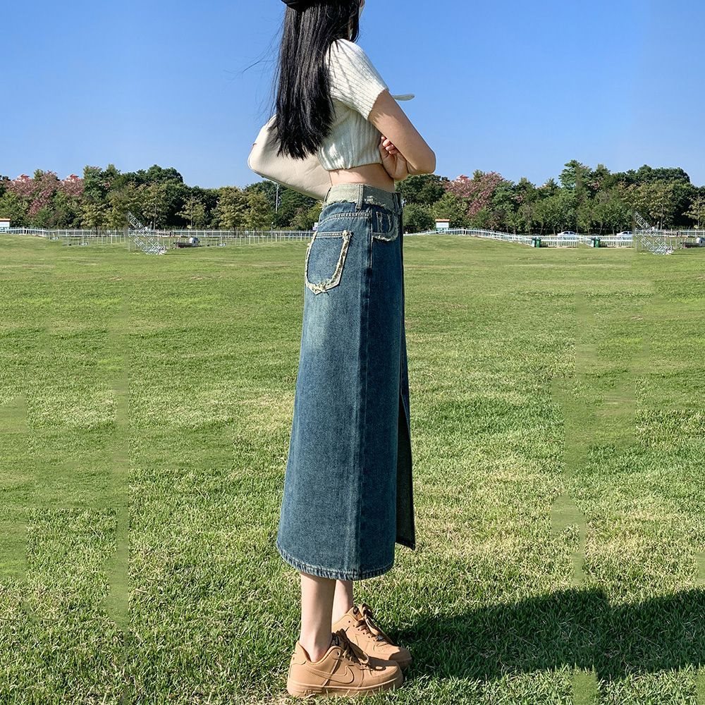 | nameOriginal | 2023 New Spring and Autumn Split High Waist Retro Slimming Denim Skirt Women's Design Sense A- Line Hip Long Skirt Trendy |