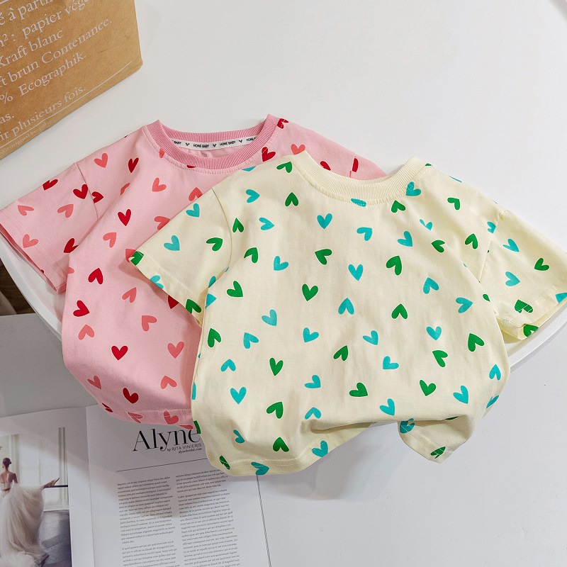 | nameOriginal | 2023 New Summer Korean Style Children's Wear Girls' Full Printed Love Cotton Loose Casual Short-sleeved Top Trendy T-shirt |