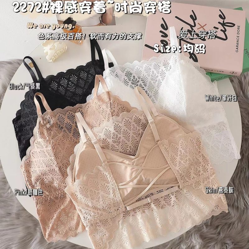 2023 One-character Collar Anti-slip Lace Large Size Vest Breathable Latex Pad Sling Beautiful Back Outer Wear Chest Wrap Underwear