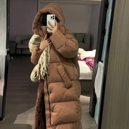 2023 original classic large quilt over the knee long down jacket winter New hooded thickened women's fashion