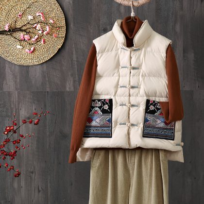 2023 retro down jacket vest for women autumn and winter New Style buckle white duck down loose waistcoat vest down jacket