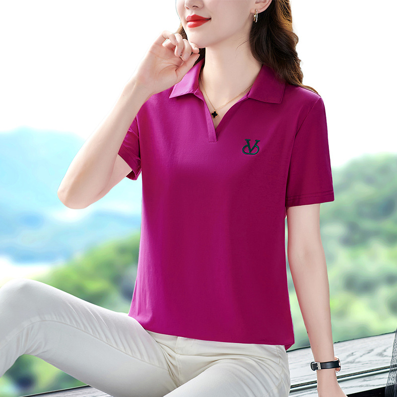 | nameOriginal | 2023 solid color mom half cardigan summer new retro T-shirt women's slim young high-end top Western style short sleeve |
