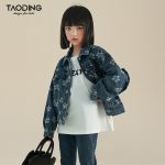 2023 Spring and Autumn New Girls' Denim Jacket Large Children's Clothing Western Style Fashionable Jacket Jacquard Children's Denim Jacket