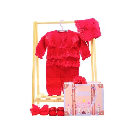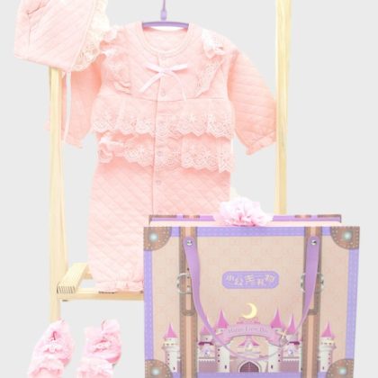 2023 Spring and Autumn New girls' long-sleeved quilted jumpsuit infant gift box suit baby clothes romper