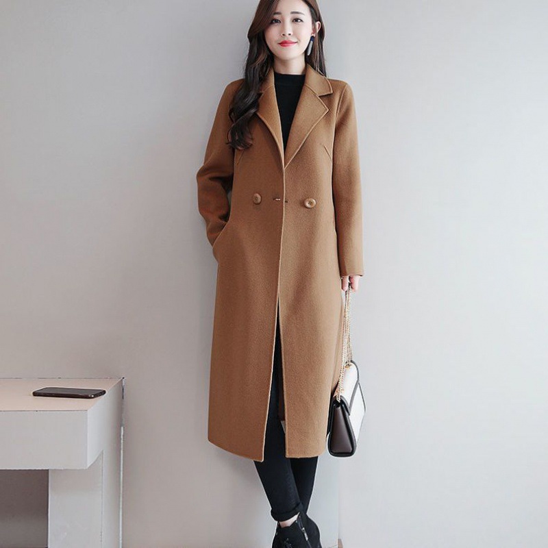 2023 Spring and Autumn New Korean style over-the-knee mid-length double-sided woolen overcoat women's all-match loose woolen overcoat