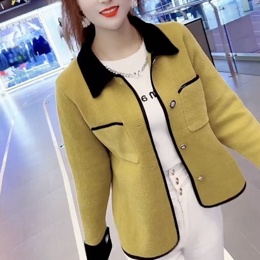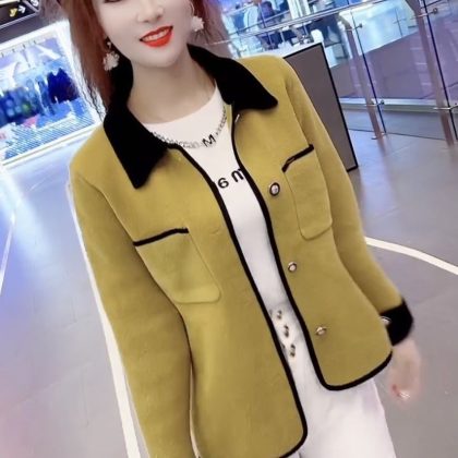 | nameOriginal | 2023 spring and autumn new lapel color matching double-sided velvet coat covering flesh slimming fashion trend small fragrant style woolen cloth top |