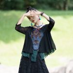 2023 spring and summer new ethnic style women's clothing Chinese retro heavy embroidery stitching three-quarter sleeve improved Tang suit top