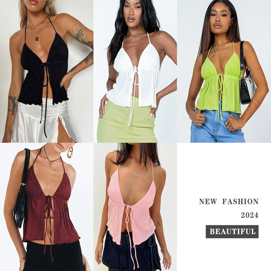 | nameOriginal | 2023 Spring and Summer New Women's Vest Sling European and American Sexy Lace-up Drawstring Sling Shirt |