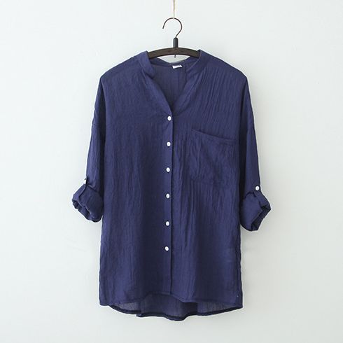 | nameOriginal | 2023 Spring and Summer Sunscreen Clothing Japanese Style Fresh Loose Cotton and Linen Seven-Sleeve Vertical Collar Linen Shirt Women's Fashion |