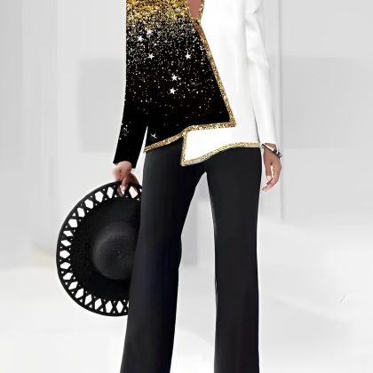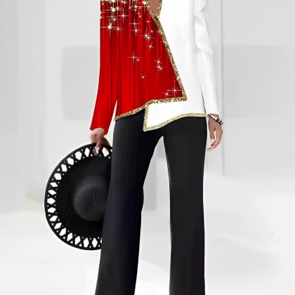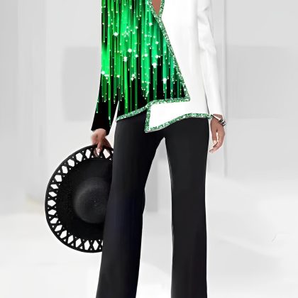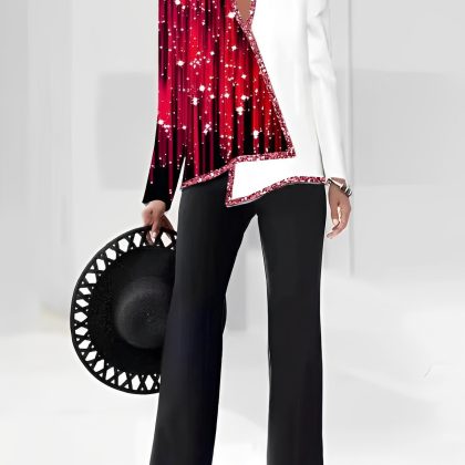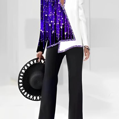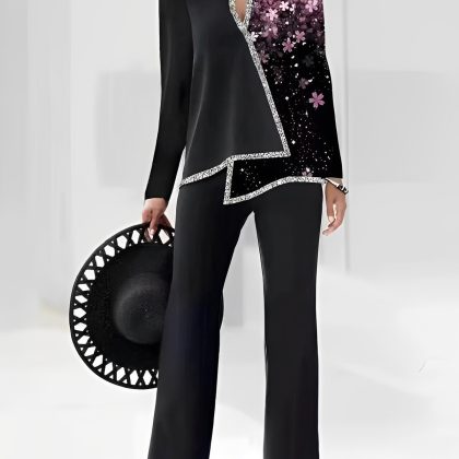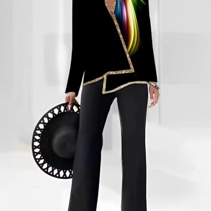 | nameOriginal | 2023 summer Europe and America Amazon 3D digital printing women's V-neck asymmetric fashion casual shirt pants suit |