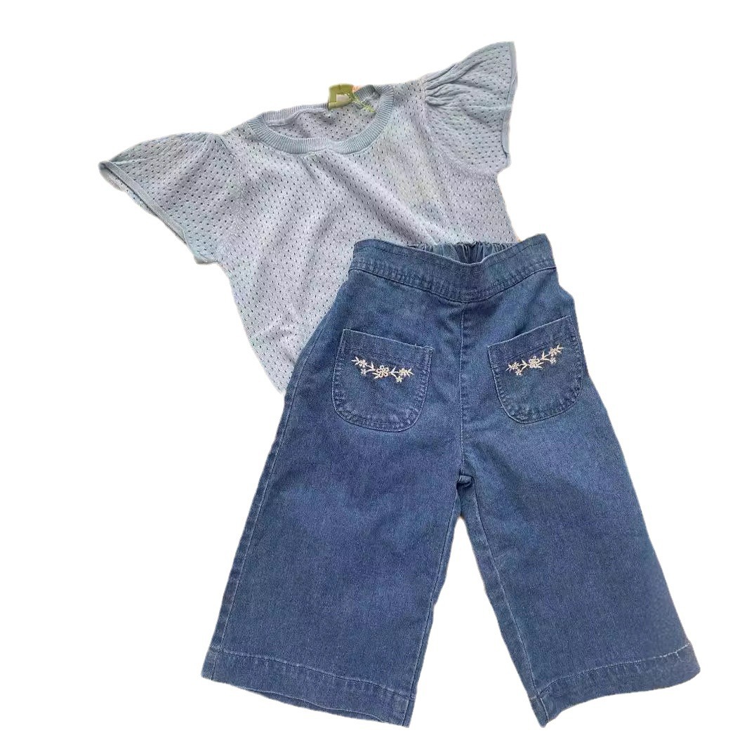 | nameOriginal | 2023 Summer girls' f soft organic cotton lapel hollow thin soft knitted flying sleeve bottoming top in stock |